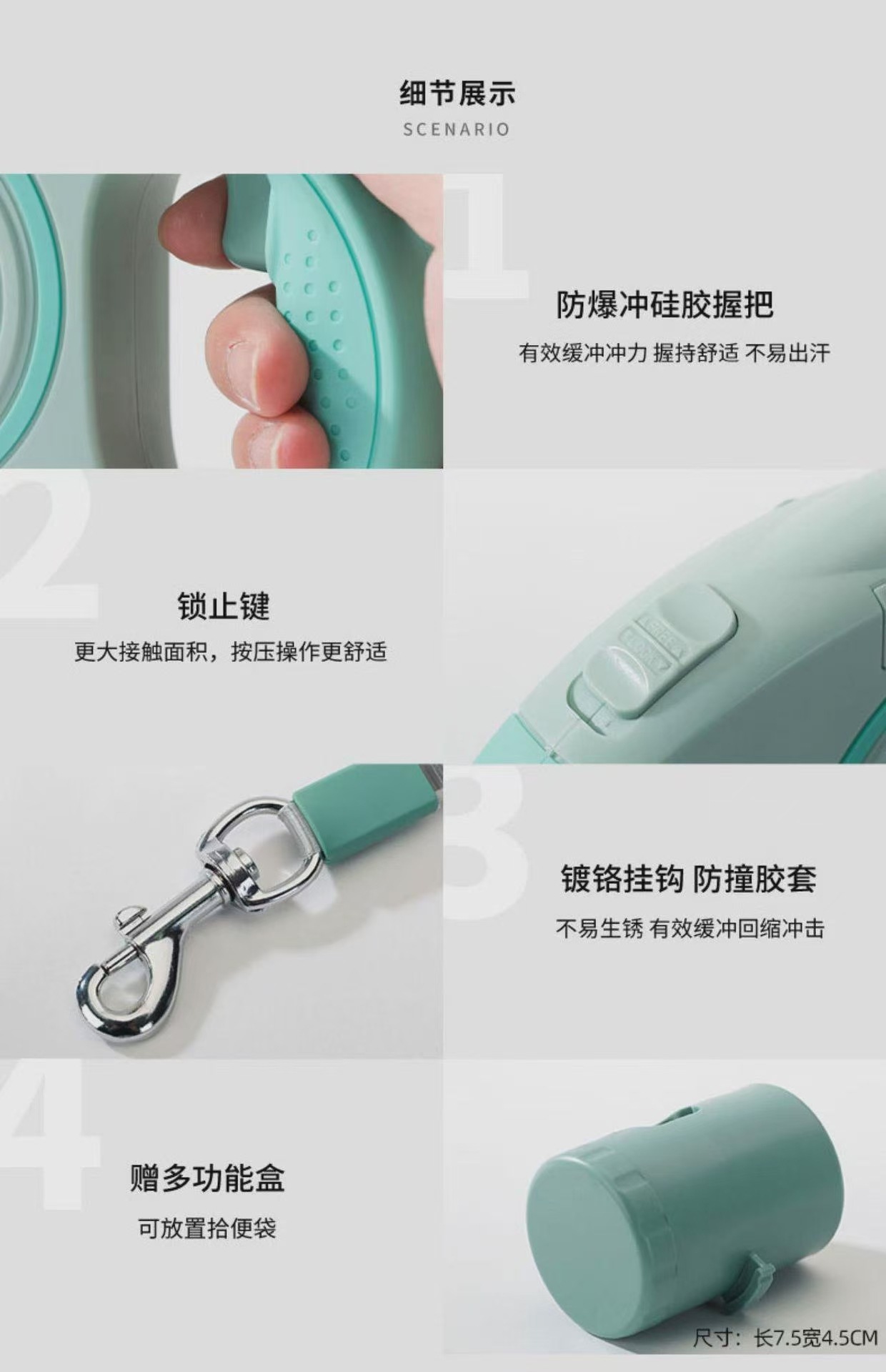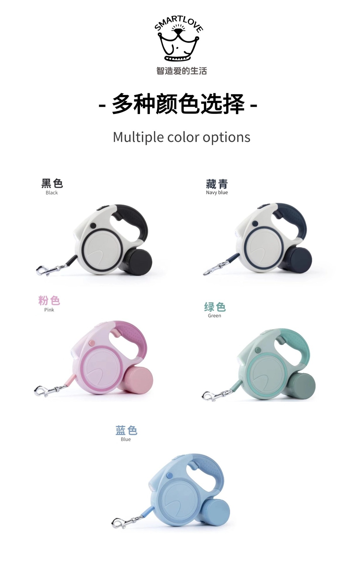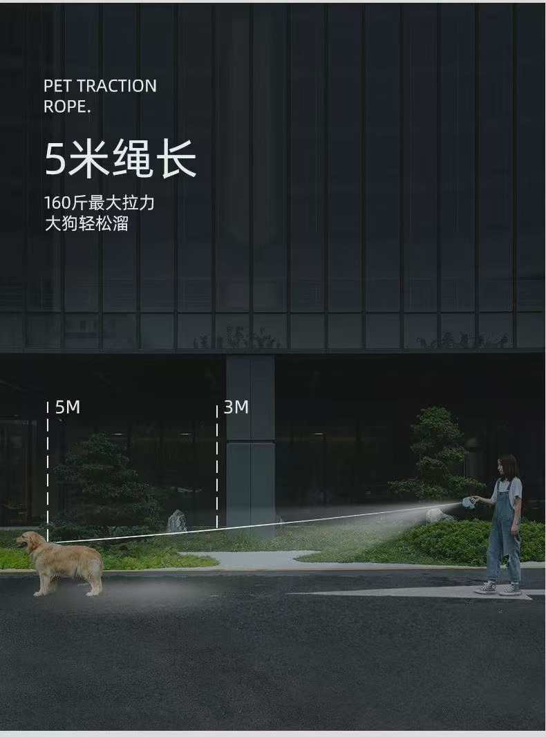 3-in-1 dog leash with light, automatic retractable reflective rope, poop box, dog walking rope for pets